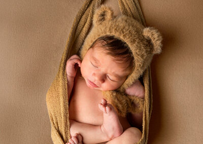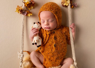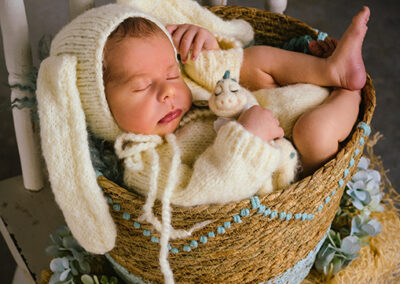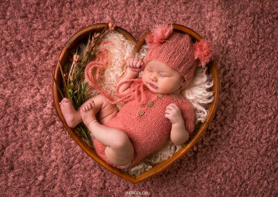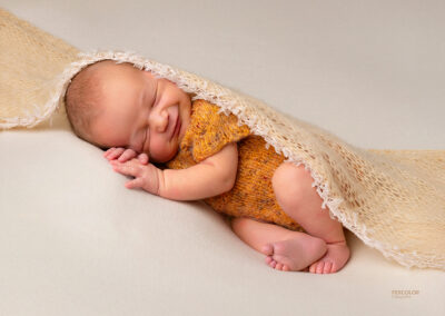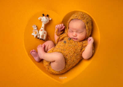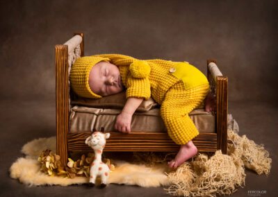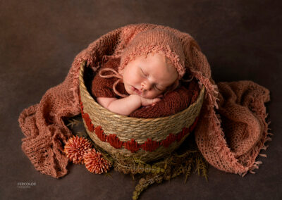 Las fotos las realizamos entre la primera y la tercera semana del bebé. Todo el atrezzo y vestuario lo tenemos nosotros,