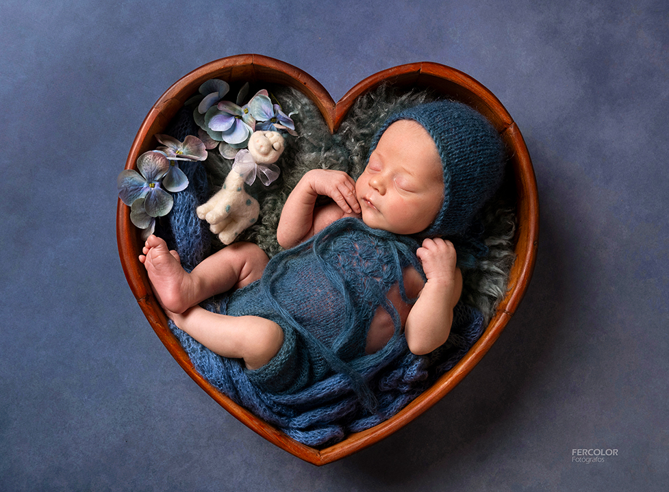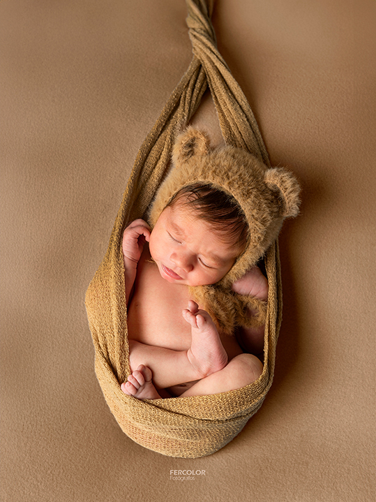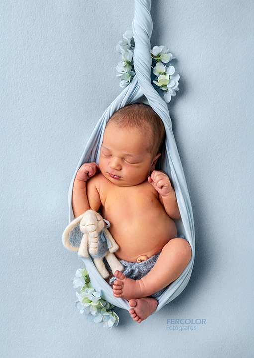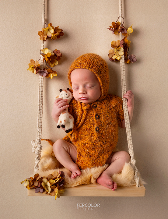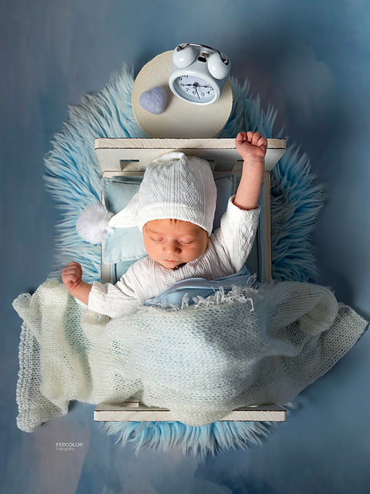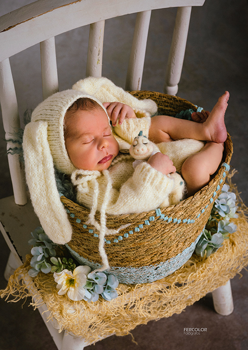 Las fotos las realizamos entre la primera y la tercera semana del bebé. Todo el atrezzo y vestuario lo tenemos nosotros,